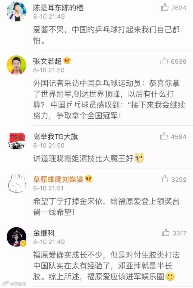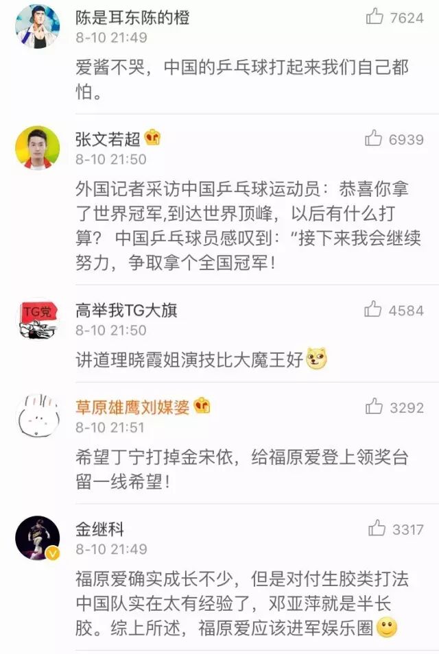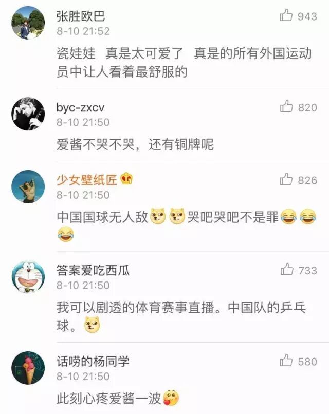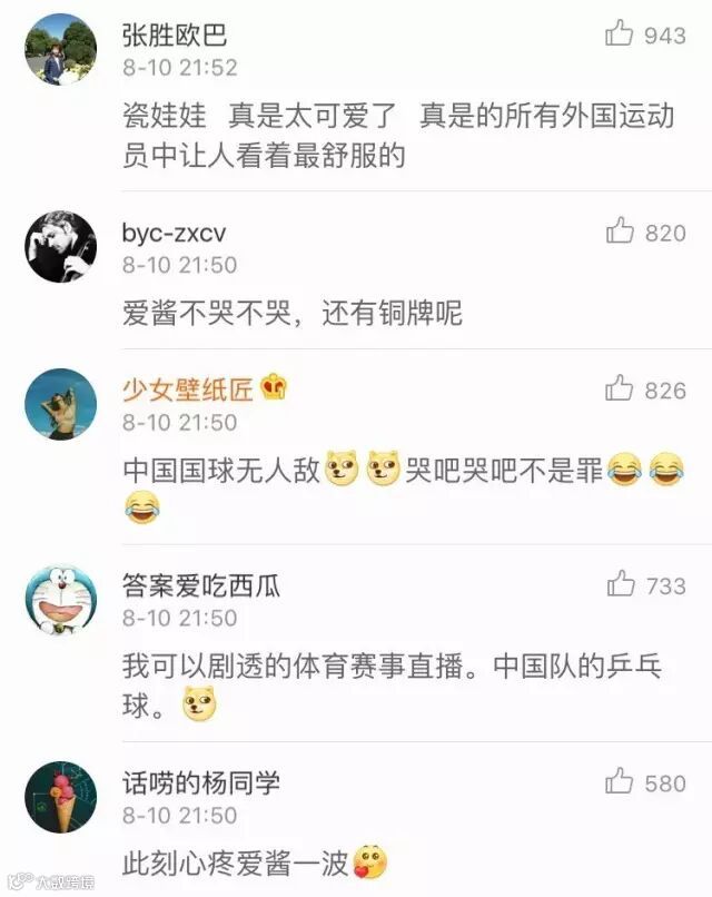 而且爱酱的萌神魅力已经满满地要溢出来了,不仅在国乓界获得万千宠爱,也像宁泽涛收割全球迷妹一样,俘获了很多人的心。随便放几张感受一下这满满的爱意: