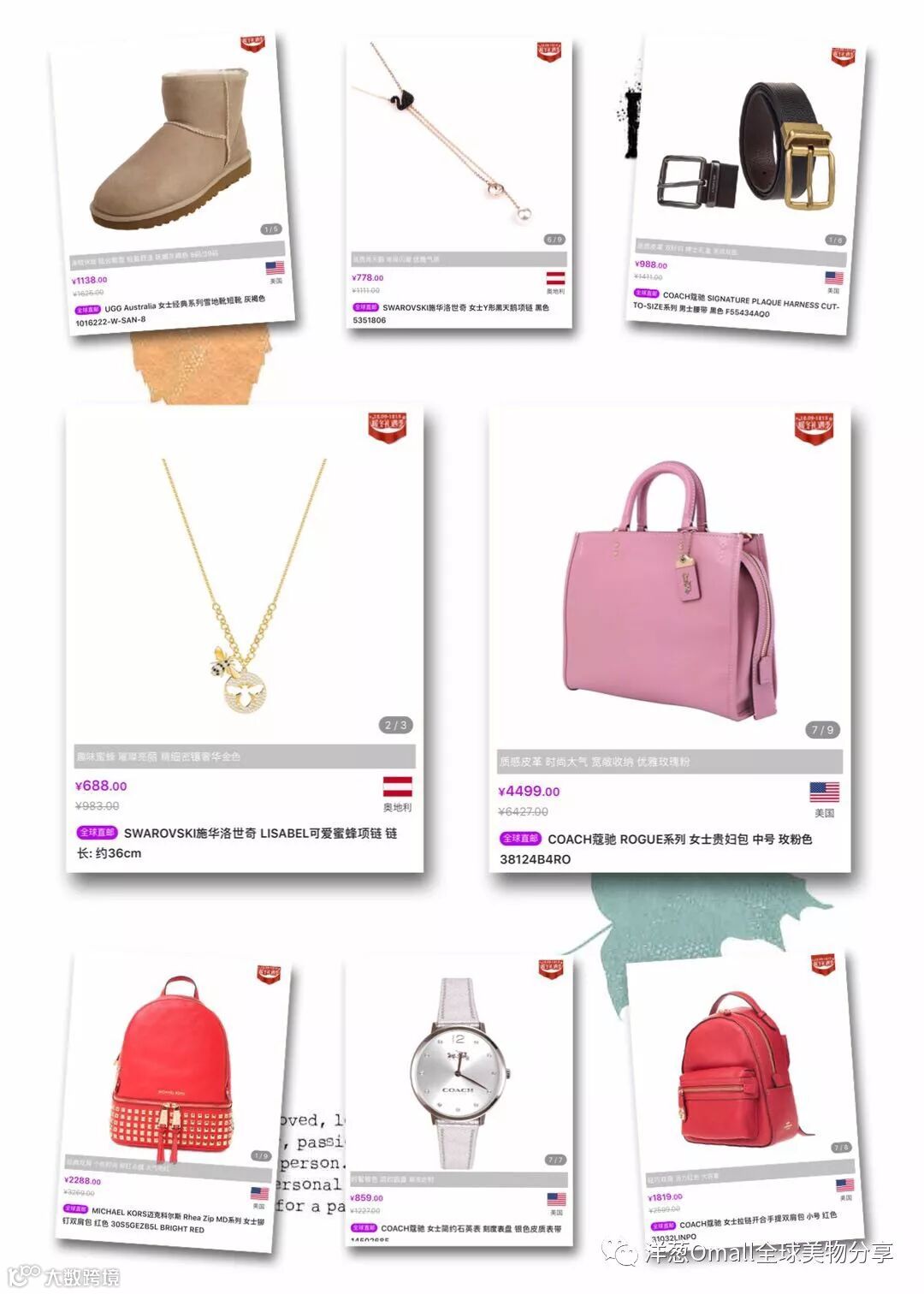 🇦🇹SWAROVSKI施华洛世奇 🇺🇸 COACH蔻驰🇺🇸 MICHAEL KORS迈克科尔斯 🇺🇸 UGG Australia雪地靴…来袭~