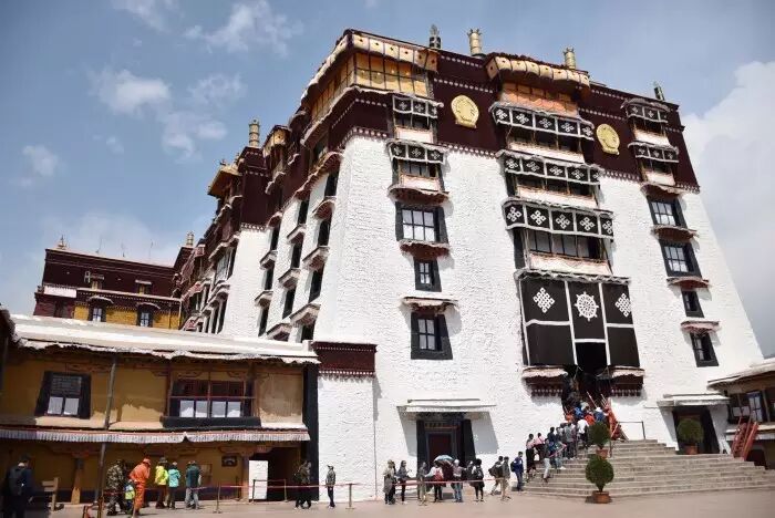 早晨先参观布达拉宫。布达拉宫建于公元637年,一千多年来一直是历世达赖喇嘛的冬宫,是西藏最负盛名的旅游景点,有13层楼高,内藏珍宝无数。