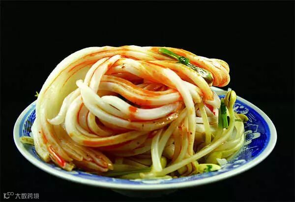 凉皮的字面意思是冰冷的皮肤,但它其实与动物产品无关。《纽约时报》的朱莉娅-罗斯金将这道西安名吃形容为“a dish of cold noodles in a sauce that hits every possible flavor category, sweet, tangy, savory, herbal, nutty and dozens of others”(可以用各种口味调拌的面条状冷餐,可以是甜的,臭的,香味宜人的,搭配草药、坚果以及其他配料)。