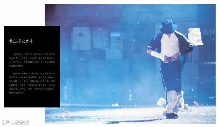“我写过一本叫《舞梦》的书。它其实比《太空步》更具自传性。由于其中没有什么八卦丑闻和所有那些不良记者写的垃圾,所以反而人们不太关注它。但这本书来自我的内心。其中有诗歌,有散文,有思索,有我在旅行中一直会思考的东西。”