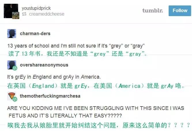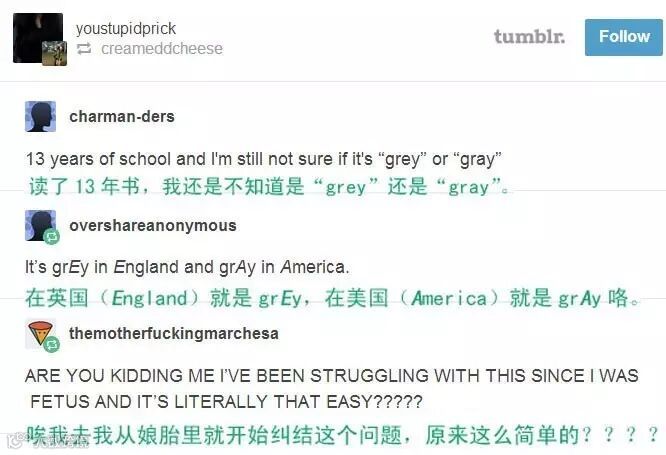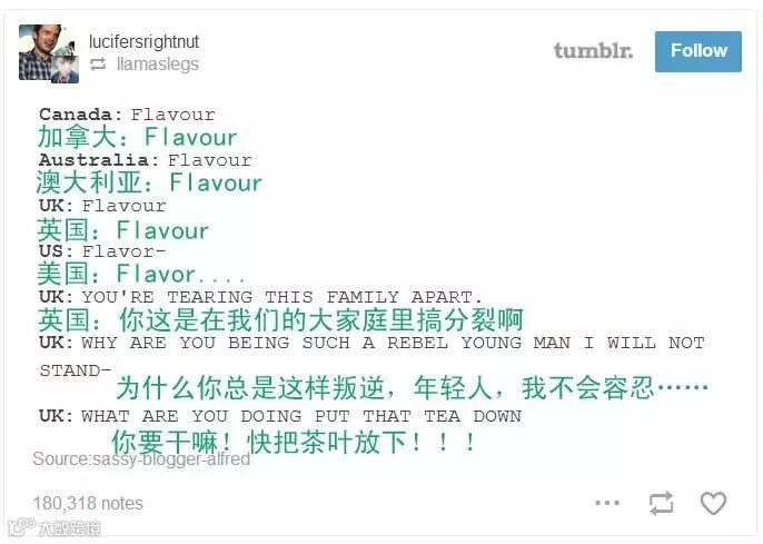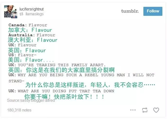 我们今天就分享一些Tumblr上英、美、加三国网友因为文化差异而掐架的帖子……
