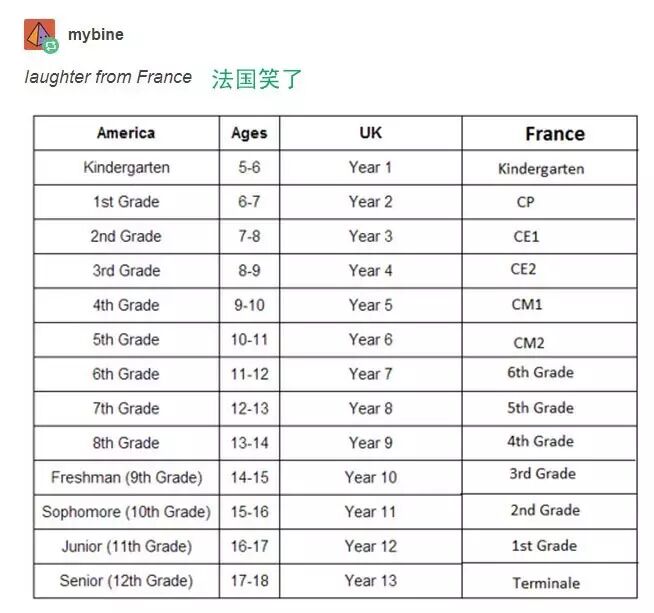 好吧,法国你赢了……高四叫做terminale,感觉好像一毕业就要被枪毙啊……高三叫做1st Grade,倒着来啊……