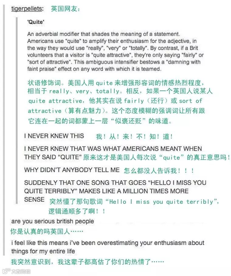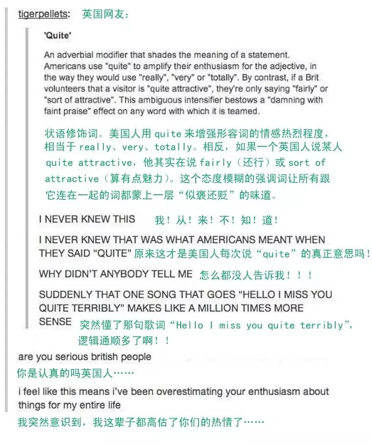当英国人和美国人终于知道了quite这个词的真相的时候……
