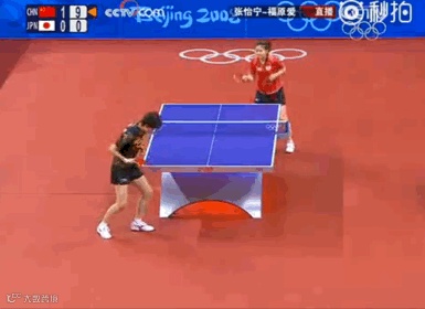 当时张怡宁与福原爱对打,第二局时张怡宁一下打了一个9-0,还面无表情地扣了爱酱好几个球,真是太狠了……当时爱酱已经要哭了……