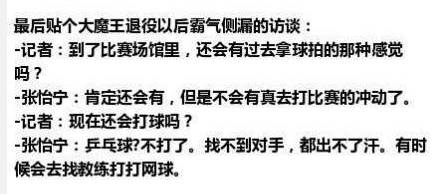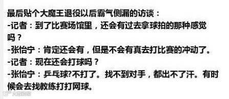 张怡宁后来琢磨的都是怎么才能给对手多让几个球……无敌是多么的寂寞……