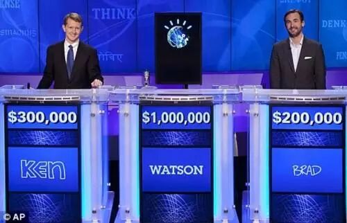 “深蓝”的同门师弟“沃森”(Watson)在美国老牌智力问答节目《危险边缘》(Jeopardy)中挑战两位人类冠军,最终获胜