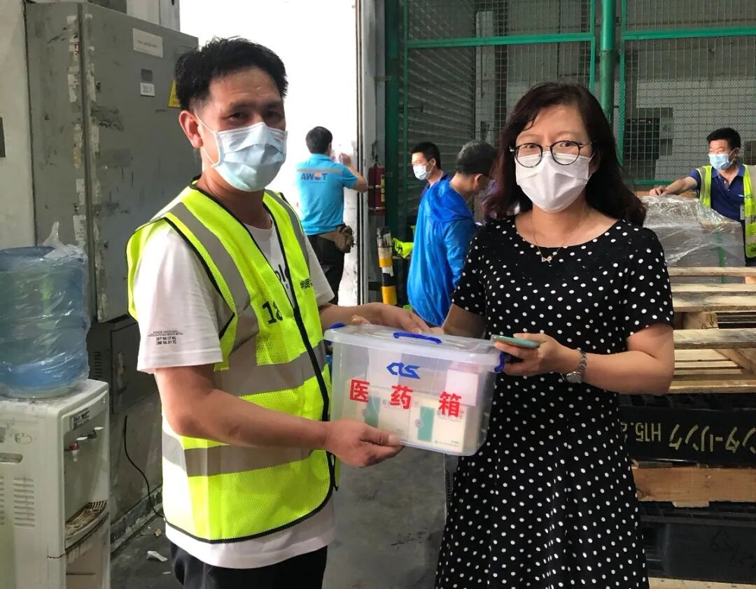 工会代表也送上贴心药箱,并叮嘱抗疫同时要关注马上到来的高温天气,及时提出工作困难并解决,确保大家安心投入复产复工工作。