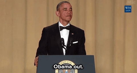 最后,奥巴马用两个词结束了自己的专场,“Obama Out”(奥巴马,滚蛋),并附赠一个潇洒的mic drop(扔麦)。