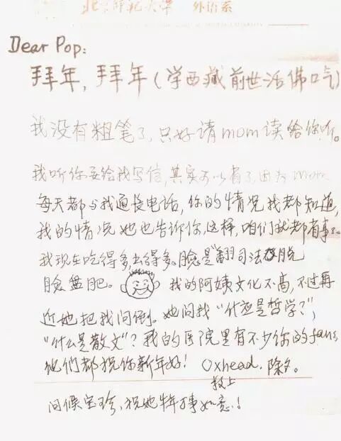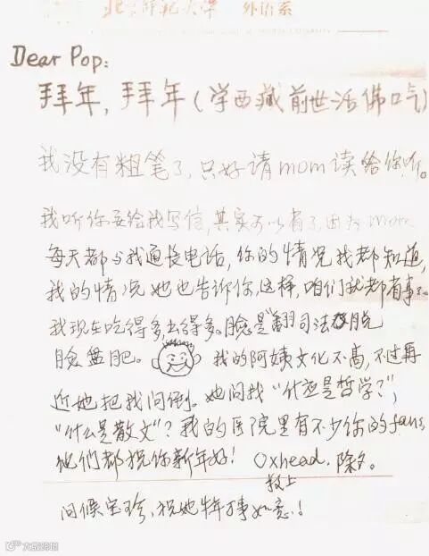 1997年新年,她还给爸爸写信拜年。