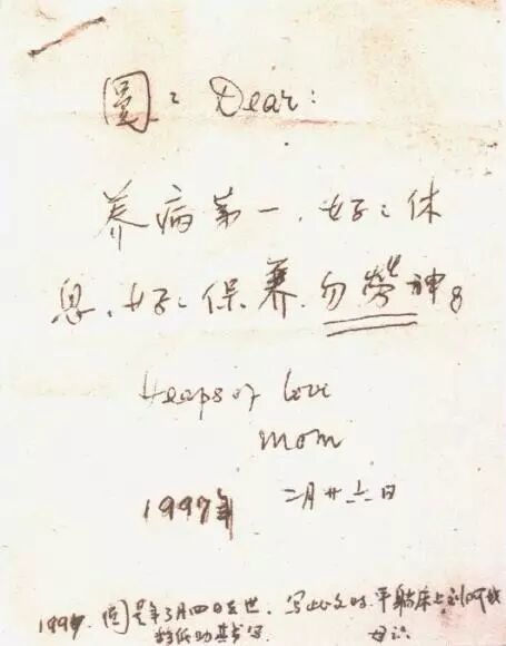 杨绛写给钱瑗的字条,嘱她不要劳神。
