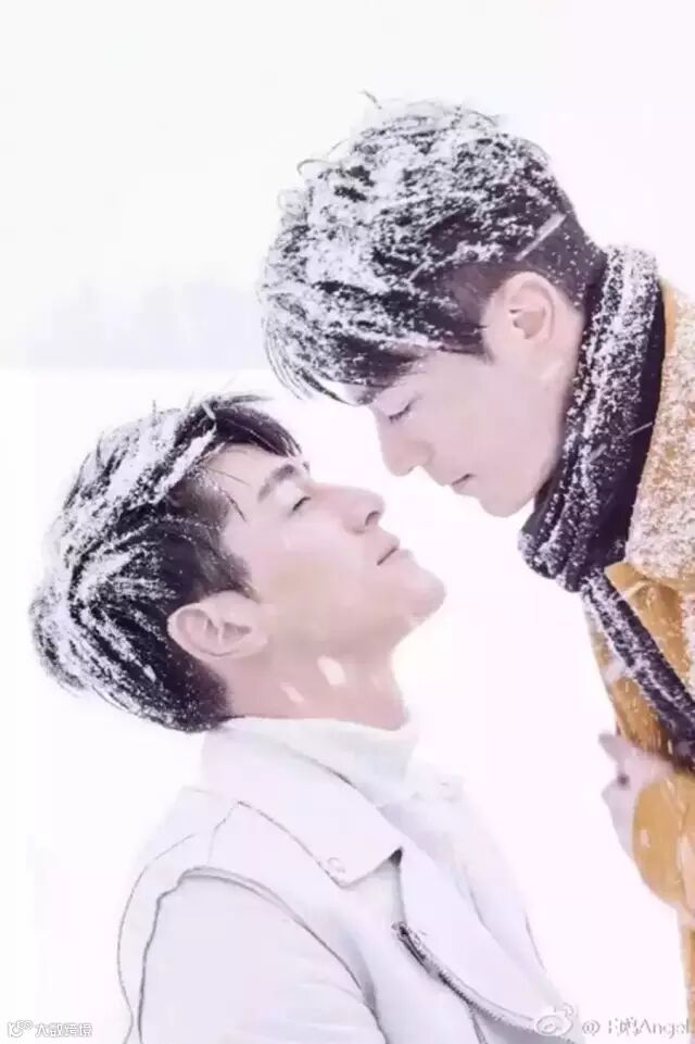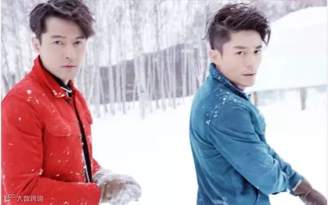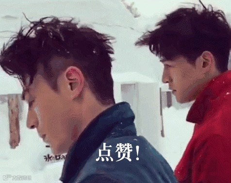 踏雪而来的他们,头发上,领子上,手套上,都是随意(random)散落的雪花。这两件外套(jacket)的颜色选的也是十分的应景:红色热情而奔放,蓝色忧郁而内敛,一红一篮交相呼应,在配上竖起的领子(collar)显得不羁又潇洒,CP感简直爆棚。