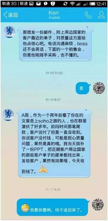 11月07日,Ken发来紧急求助,30万尾款没收回,客户未付尾款。 Ken经过和我沟通30分钟后,Ken给客户发了一个PPT,4天后, 11月11日,30W尾款收回!