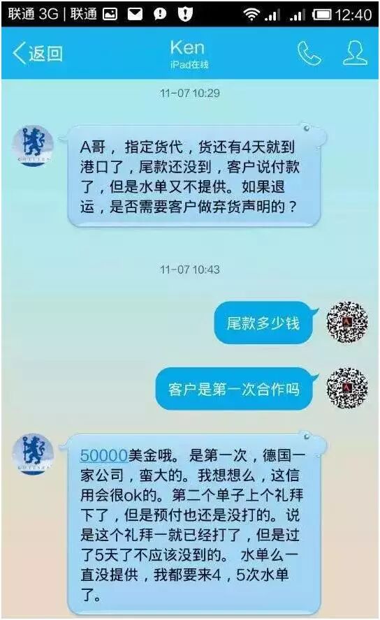 今年10月,有一票德国的货,Ken和客户之前商量好的是见提单2个星期之内付款,但是2个星期之后,客户汇款还是没有动静,这个时候Ken觉得毕竟是欧洲的客户,信用体系不用担心。之后Ken一直在等货款中度过,到了第四周,11月3号的时候,船还有7天就到港了,开始着急又催了客户一次,第一次客户说早上刚汇款了,Ken也没在意,又过了4天,款项还是没到。Ken开始有点不理解,外汇一般5天左右就能到,但是客户又说他们老板已经汇款了。之后Ken问客户要水单,客户说他们老板没给他。Ken 这个时候开始着急,因为11号船就要到港了,Ken打算再次发一封邮件给客户,但是分析来分析去,但找不到一个切入点,毕竟之前催款的邮件大同小异的发了好多份,如同拳头都打到棉花上。