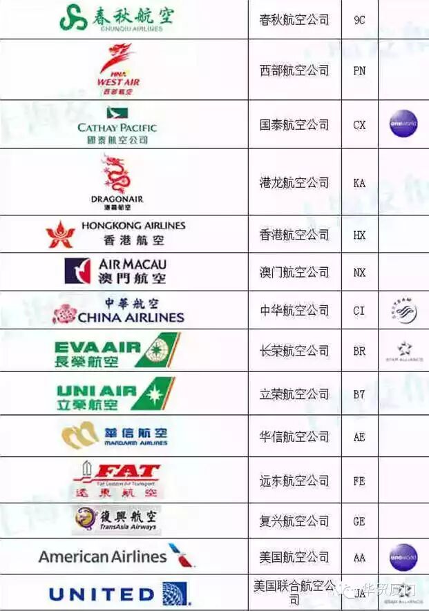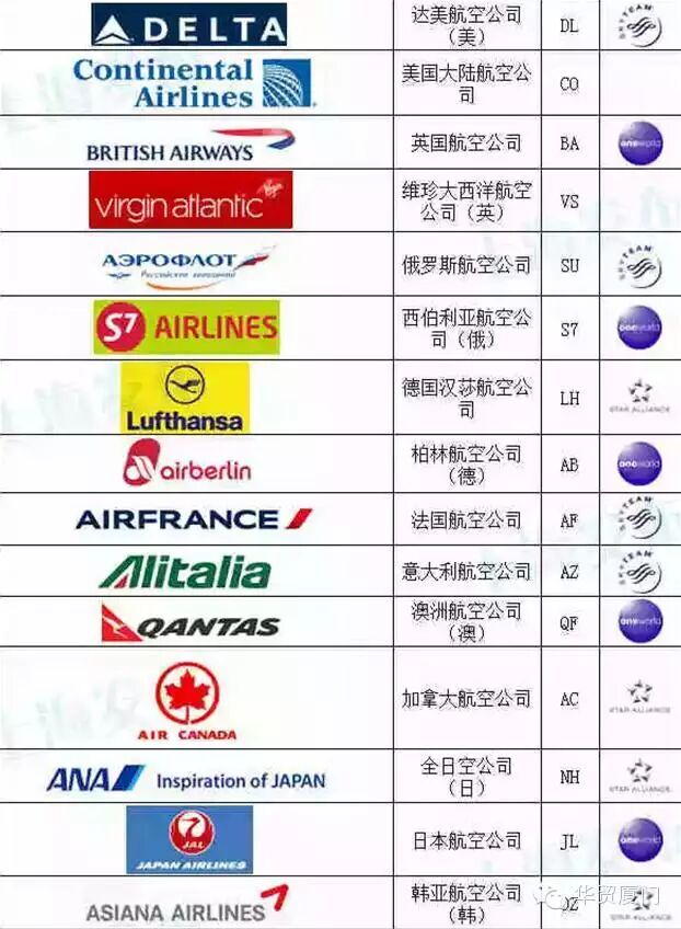 导读:国内外航空公司不完全表单 微信号:华贸厦门