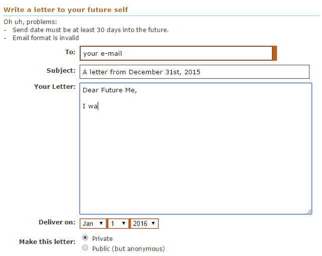 赶紧登陆网站,给未来的你写一封邮件吧。我打算写“2017年的我,2016年的新年计划都完成了吗?”,然后寄给2017年的自己。