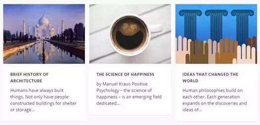 冷知识网站集合。每天早上花五分钟,泡一杯咖啡的时间,就能拓宽你的知识库,从历史到科学到哲学,Highbrow无所不包。