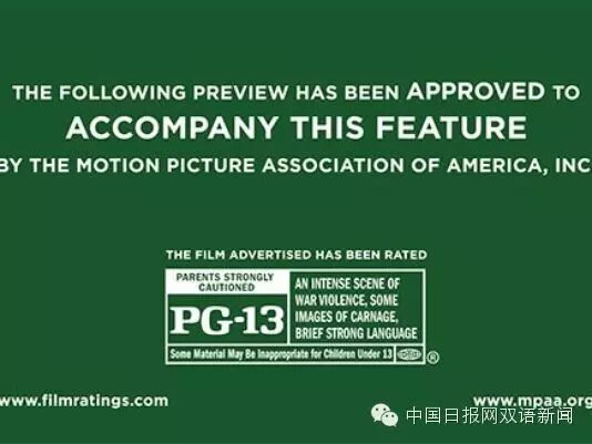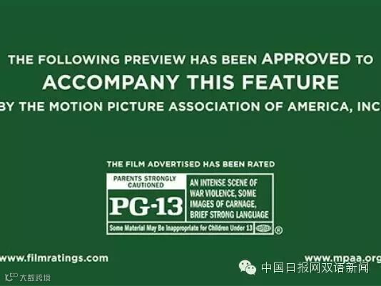 ▌PG-13 (parental guidance):指导级,13岁以上18岁以下的观众需在成年人的陪同下方可观看;