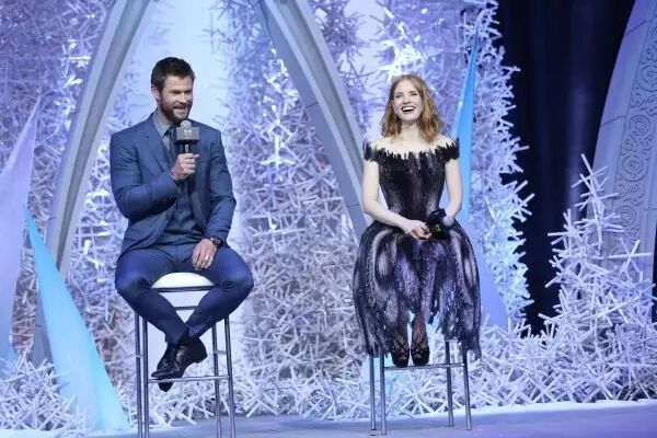 In the latest movie, Revenna (played by Charlize Theron) and her sister (played by Emily Blunt) prepare to conquer the territory, as two renegades, Eric the Huntsman (Hemsworth), and his lover, Sara (Chastain), set out to stop their plan.