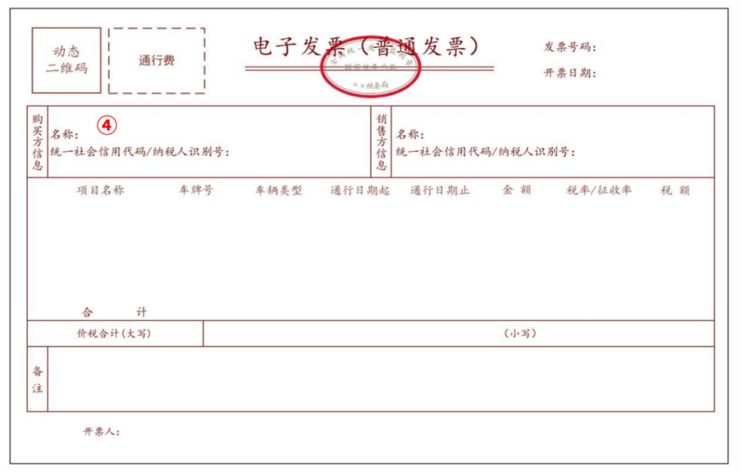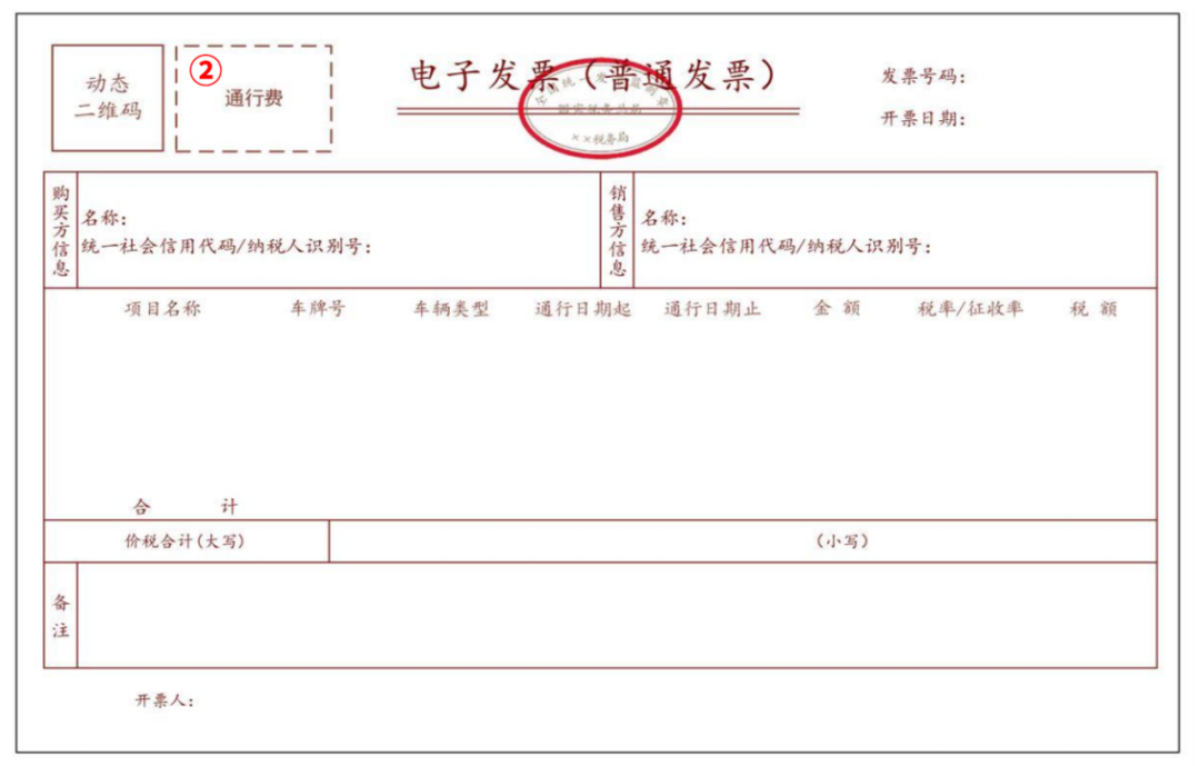 在发票左上角增加“通行费”专属标签,此标签是通行费电子发票独有的。