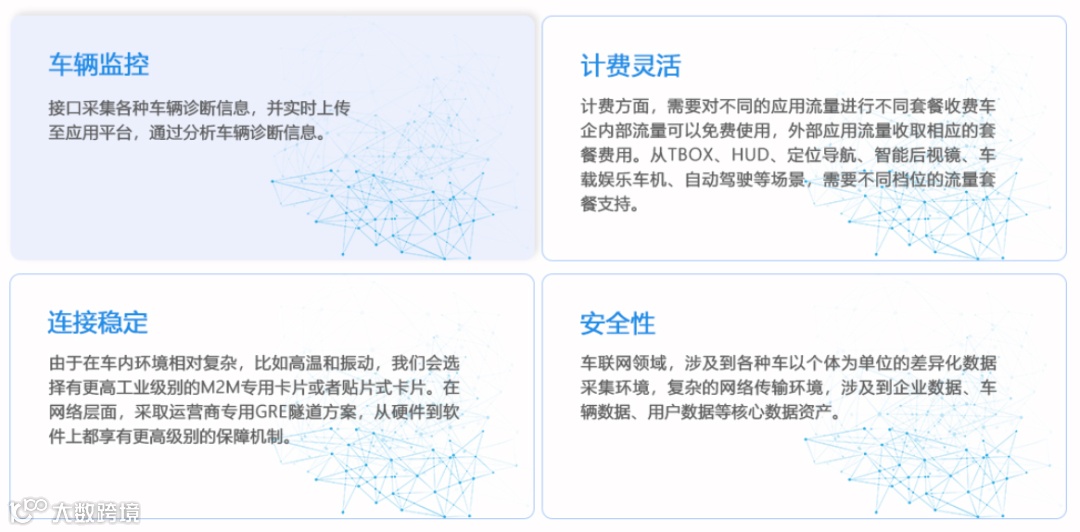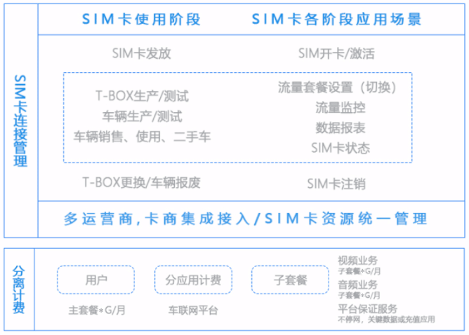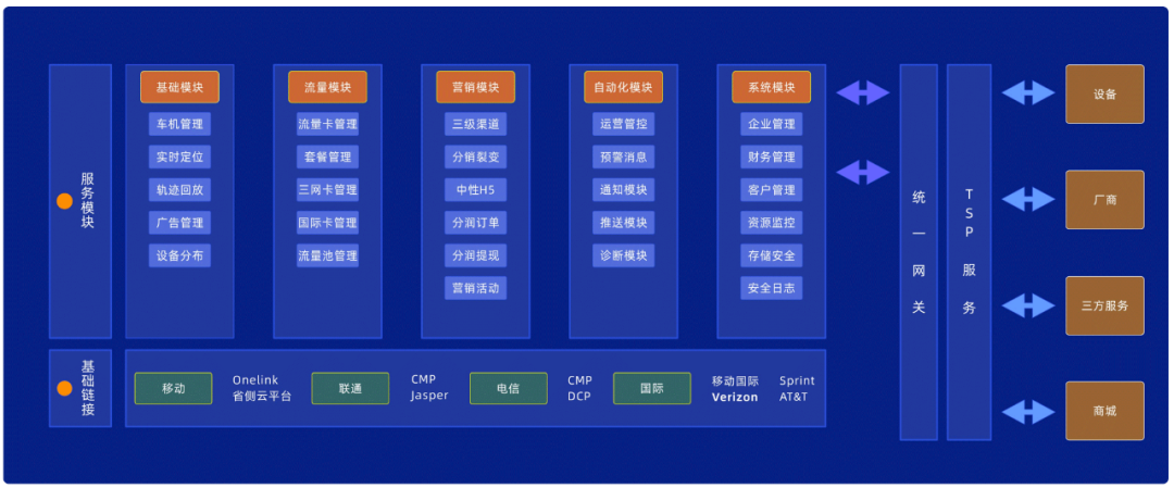 可提供设备管理、流量运营一体化平台,支撑客户车联设备连接管理运营、流量运营等复杂需求。