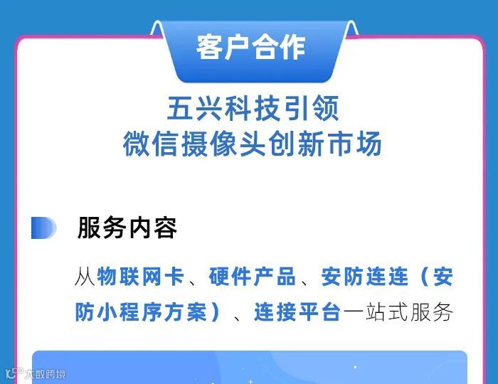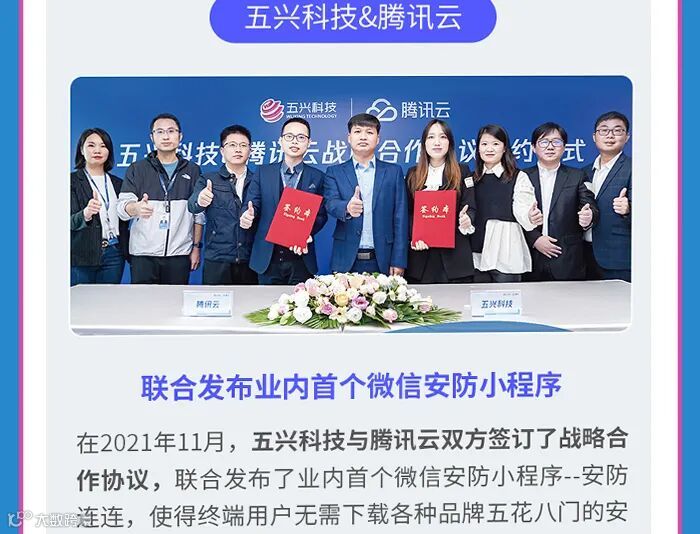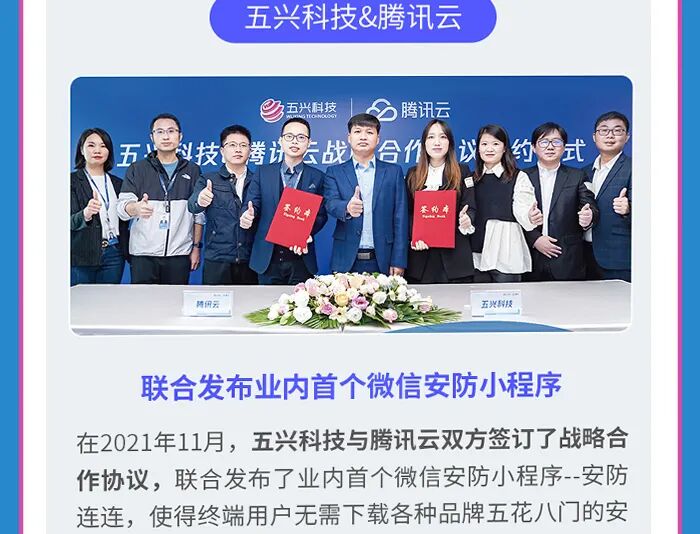 五兴科技,国家级高新技术企业、国家企业信用评价AAA级企业、中国联通战略合作伙伴、中国电信天翼物联优秀生态合作伙伴、深圳市智慧安防商会副会长单位、九脉杯优秀SaaS方案商......拥有二十余项国家软件著作登记证书,是国内领先的物联网和云通信解决方案服务商。五兴科技始终秉承“五兴科技,五星服务;五兴科技,国家兴旺”的使命,业务聚焦于5G消息、智能物联网和视频安防服务,平台赋能共生构建开放合作生态,推动助力企业生态数字化转型。
