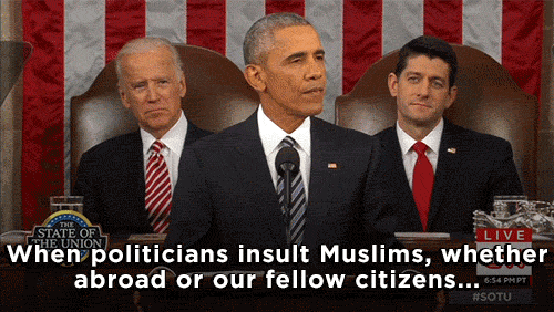 “When politicians insult Muslims, when a mosque is vandalized, or a kid bullied, that doesn’t make us safer. That’s not telling it like it is. It’s just wrong. It diminishes us in the eyes of the world. It makes it harder to achieve our goals. And it betrays who we are as a country.”
