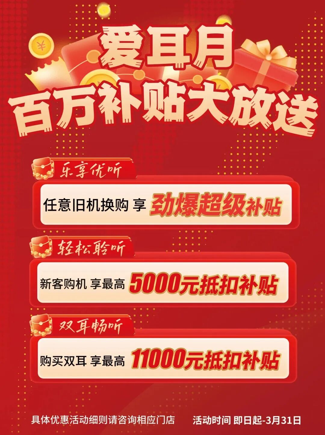 爱耳月多重补贴惊喜放送中,欢迎进店问询!