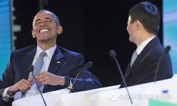 奥巴马现场客串起了主持人,向马云发问,马云的机智回答多次逗得奥巴马大笑,气氛十分融洽。