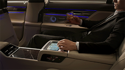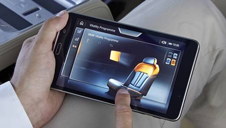 The system includes a 7-inch tablet integrated into the rear centre armrest that enables configuration and operation a wide range of functions from all seats in the car. The tablet can be used to adjust the rear and passenger seats, air-conditioning, ventilation and seat heating for the rear seats as well as the interior ambient light, glass-roof roller sunblinds and side window sunblinds. It also lets you access the entertainment features and navigation system.