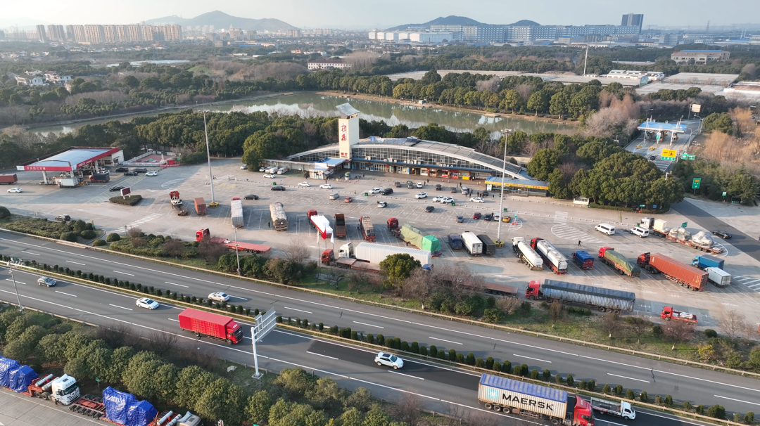 新桥服务区是沪武高速离长江最近的一个服务区,打造江豚IP主题,里面有江豚文创店、江豚数字科普展厅,同时在南北两区各有一个出入口,供当地居民闲暇之余来服务区休闲娱乐。