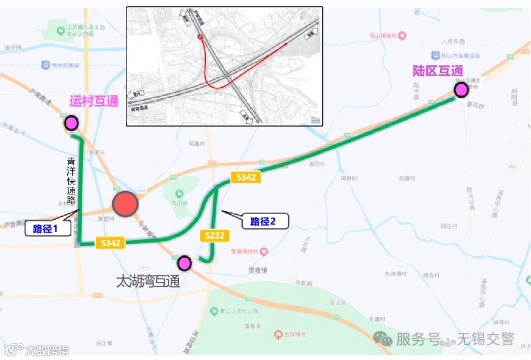 路径1:陆区互通-S342-青洋快速路-运村互通