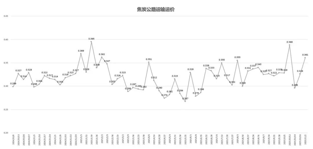 本周焦炭运输运价为0.341元/吨公里,较上周上涨了0.035元/吨公里,涨幅为10.74% 。