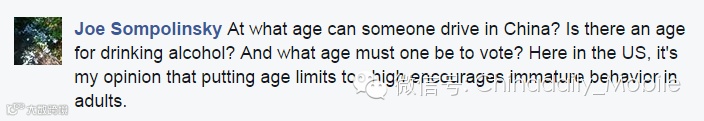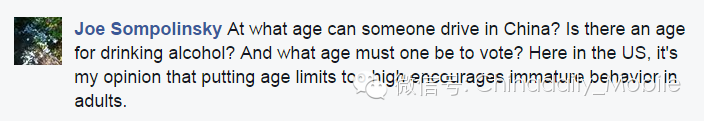 在中国,几岁可以开车,几岁可以喝酒,几岁可以参与选举投票?在美国这边,我个人觉得将年龄限制的太高会鼓励成年人的不成熟行为。