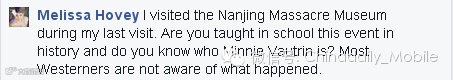 2、I visited the Nanjing Massacre Museum(Memorial Hall of the Nanjing Massacre) during my last visit. Are you taught inschool this event in history and do you know who Minnie Vautrin is? MostWesterners are not aware of what happened.