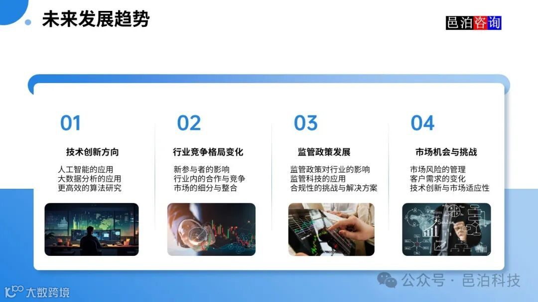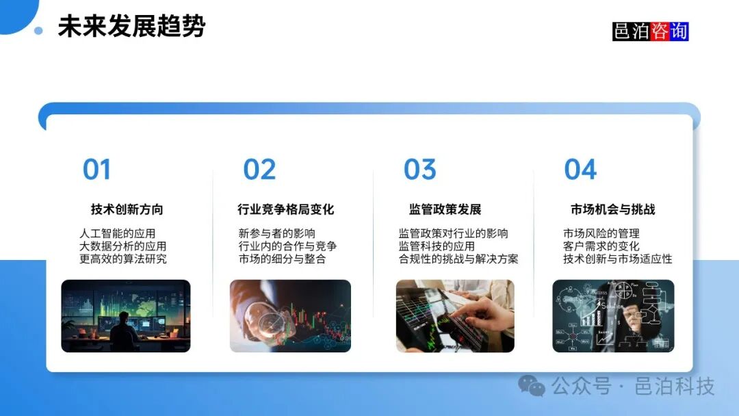 高频量化程序化交易系统未来发展趋势从技术创新方向、行业竞争格局变化、监管政策发展、市场机会与挑战四个方面来分析。