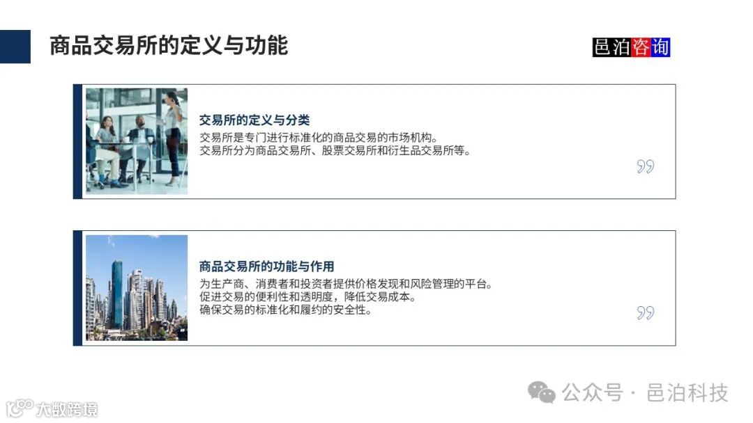 商品交易所为生产商、消费者和投资者提供价格发现和风险管理的平台。