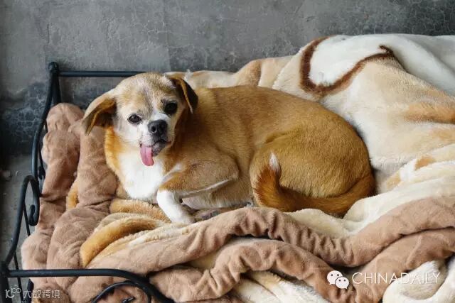 和壮壮同住的另一元老”歪歪“,当年因为癫痫而歪了嘴巴,使得半条舌头常年耷拉在嘴外面,此刻在软垫上昏昏欲睡。