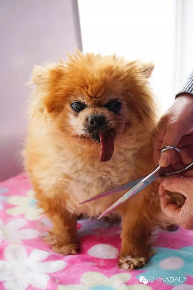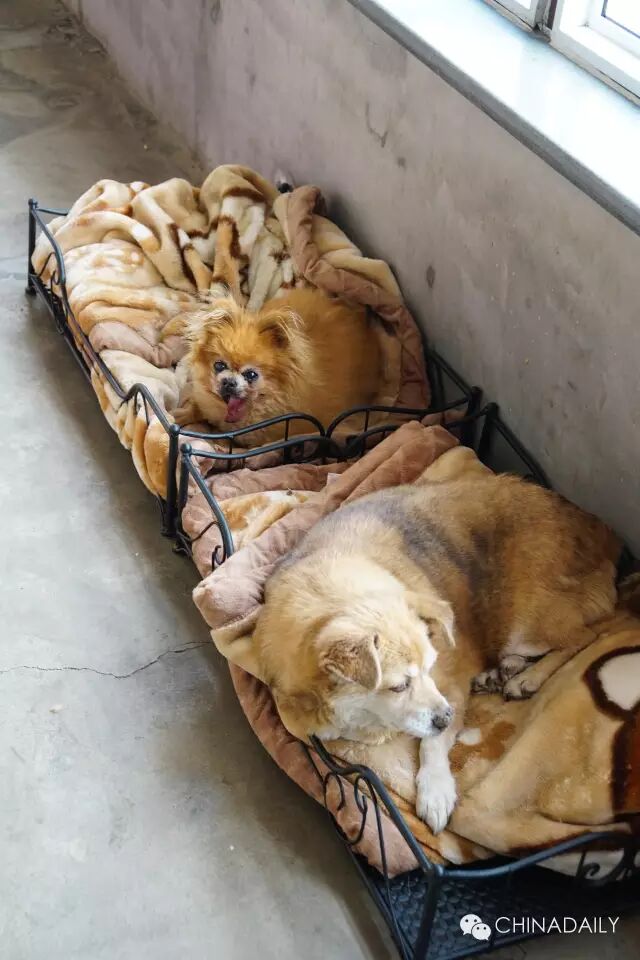 Zhuangzhuang’s roommate, Waiwai, was also an aged lady. Though she looked quite cozy and comfortable napping on her old cushion, the granny dog’s tongue was numb due to severe epilepsy.