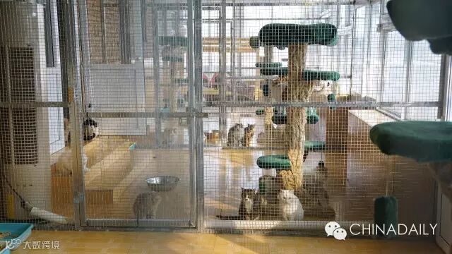 参观犬舍时恰逢开饭,狗狗们都倾巢而出,一派欢闹。房间是按脾气性格分配的,每间二到五只,能当”室友“的都是互相“聊得来的”。