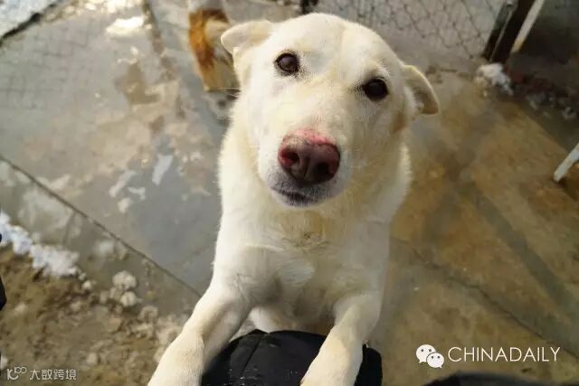 头天的积雪已经开始融化,基地门口变得湿漉漉。踩着泥水来迎接我们的是以“宽宽”,“泰森”为首的几只小土狗,举止温顺粘人。