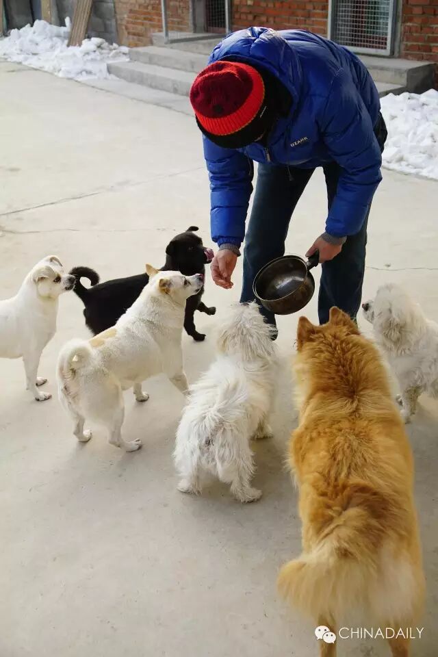 Ordinary dog food mixed with corn flour and sliced chicken is on the dogs’ daily menu, and the cook is in charge of cooking as well as feeding. The entire animal hospital only carries four people on staff, including Duan herself.