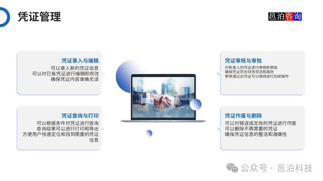 凭证管理包括:凭证录入与编辑、凭证审核与审批、凭证查询与打印、凭证作废与删除。