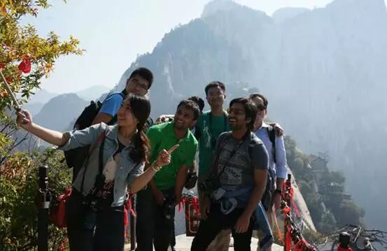 10月15日,由中国日报社和陕西省旅游局联合主办的2015年“亚媒聚焦丝路起点陕西”采访采风活动继续在陕西举行,当天采访团一行探访了以“奇险天下第一山”著称的西岳华山,登临华山北峰,一览华山的奇险峻秀。