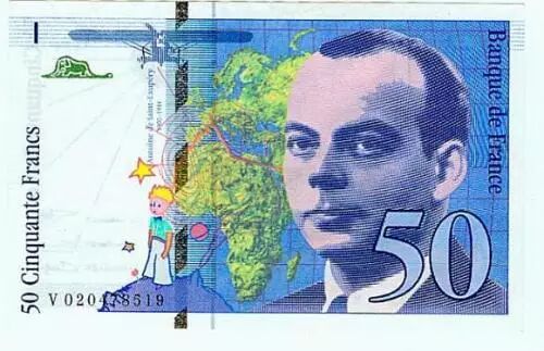 法国进入欧元区前,50法郎的纸币是瑞士设计师普杰(Roger Pfund)设计的《小王子》主题,上有是圣埃克苏佩里头像和《小王子》插图,包括一副蟒蛇吃大象的图画。用放大镜可以看到上面的微缩文字“Le Petit Prince”。法国另于2000年发行了一款面值100法郎的纪念币,一面是圣埃克苏佩里的画像,另一面是小王子。