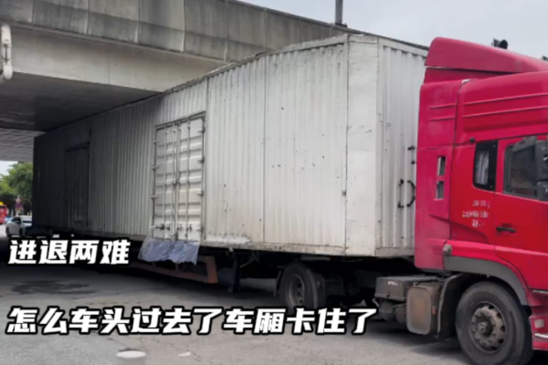 近日,一辆厢式半挂车在通过金沙洲大桥时上演"进退两难"——车头顺利通过桥底,车身却被死死卡住,形成了一幅"拦腰截断"的画面,导致交通堵塞。
