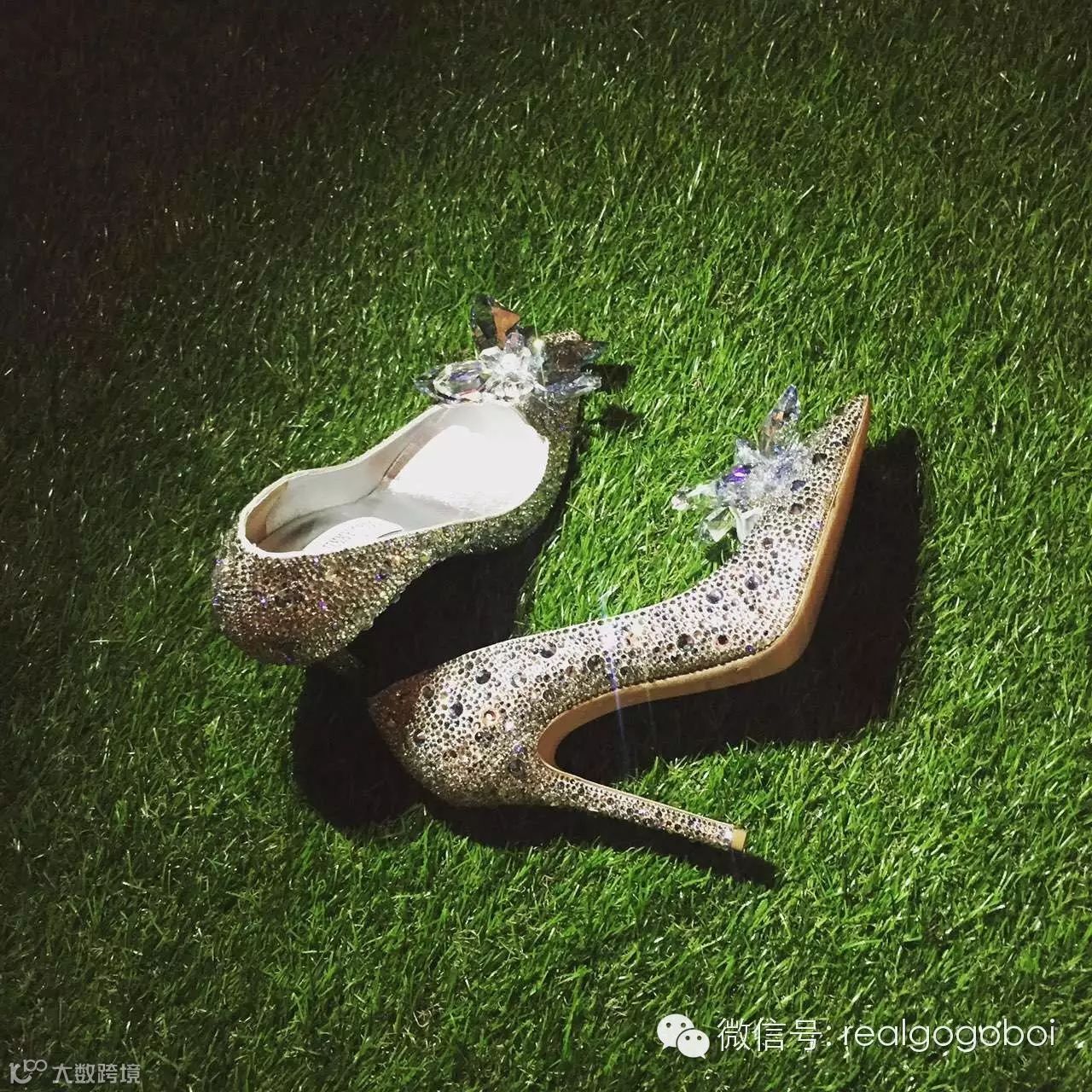 婚鞋更加公主了,是今年Jimmy Choo的灰姑娘水晶鞋。