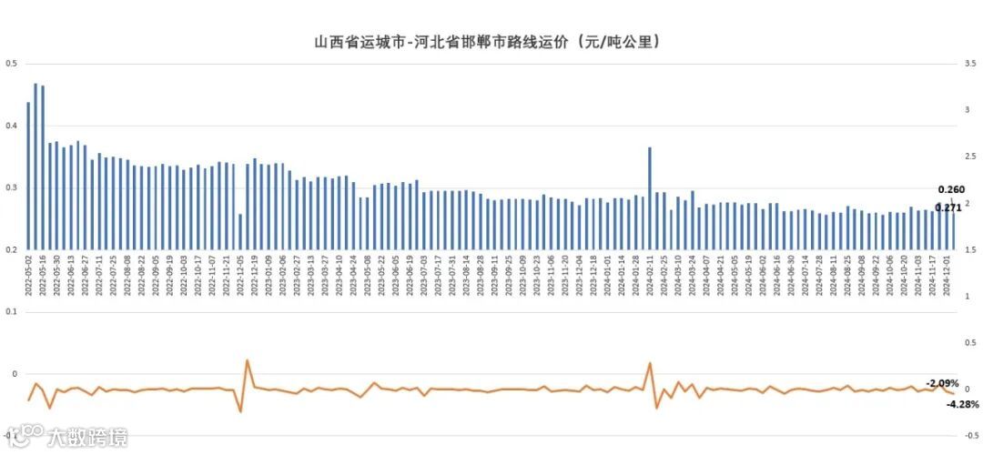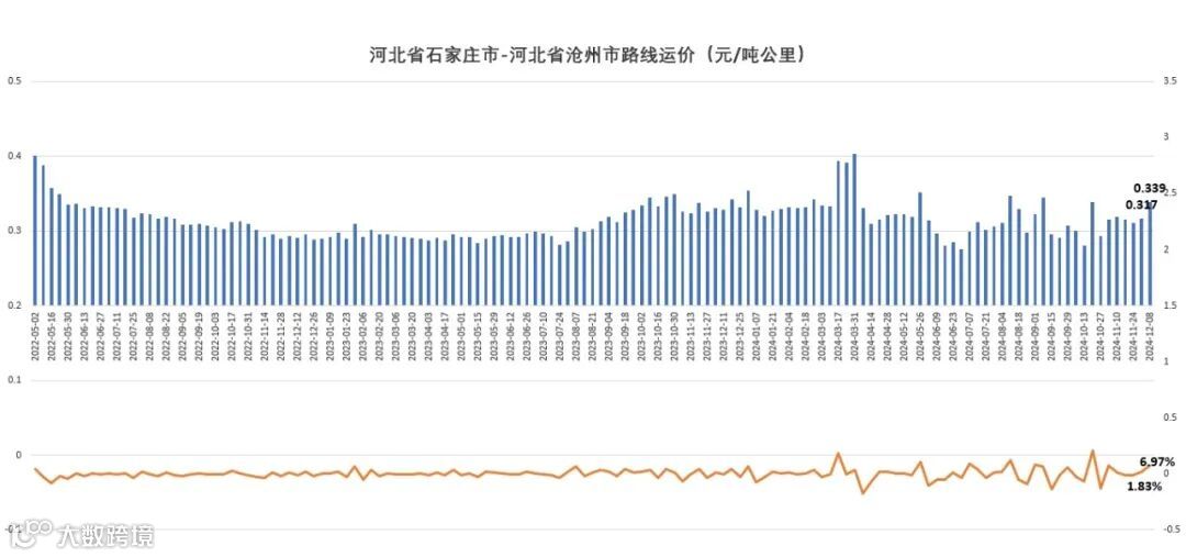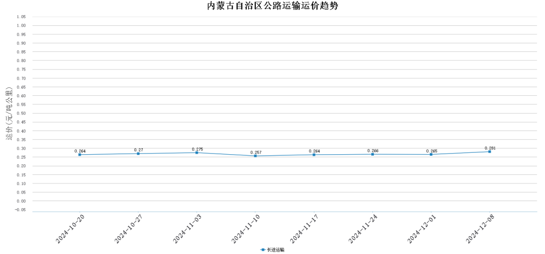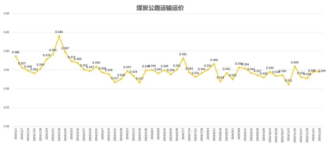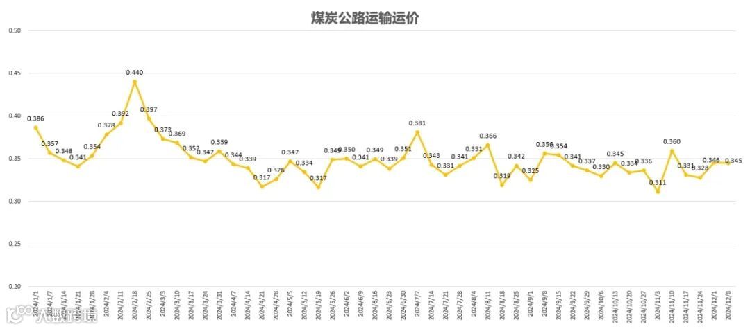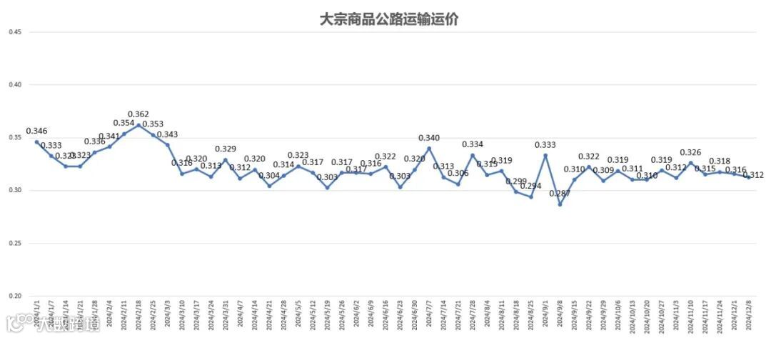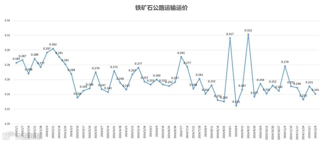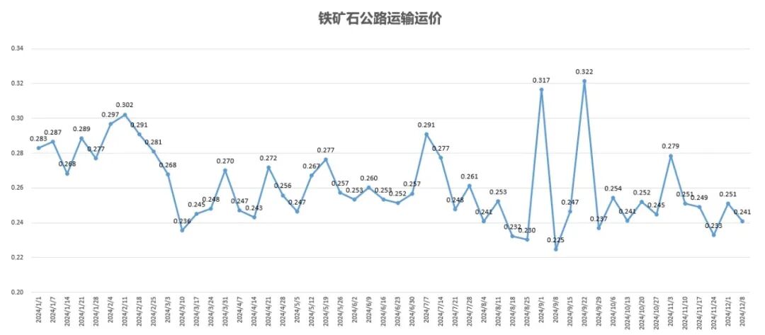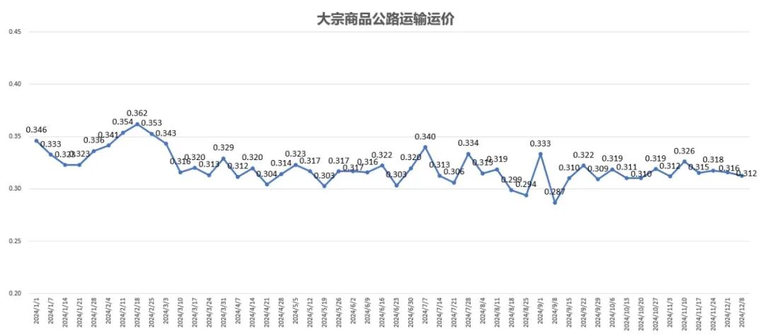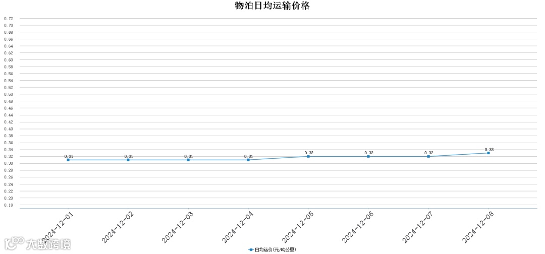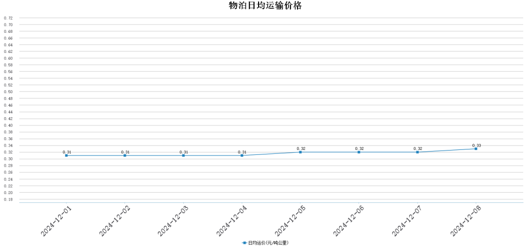 12月2日、12月3日、12月4日为0.31元/吨公里,12月5日、12月6日、12月7日为0.32元/吨公里,12月8日为0.33元/吨公里。