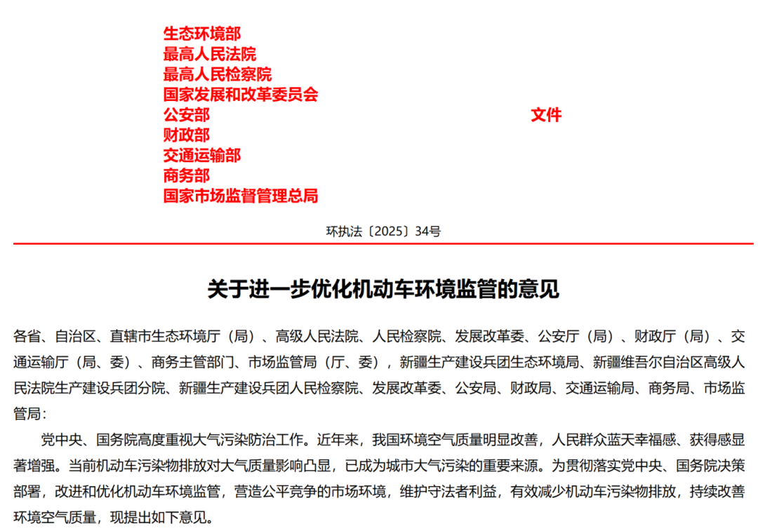 生态环境部等九部门近日发布了《关于进一步优化机动车环境监管的意见》,对机动车、特别是货车排放问题的监管做出了更加严格的规定。