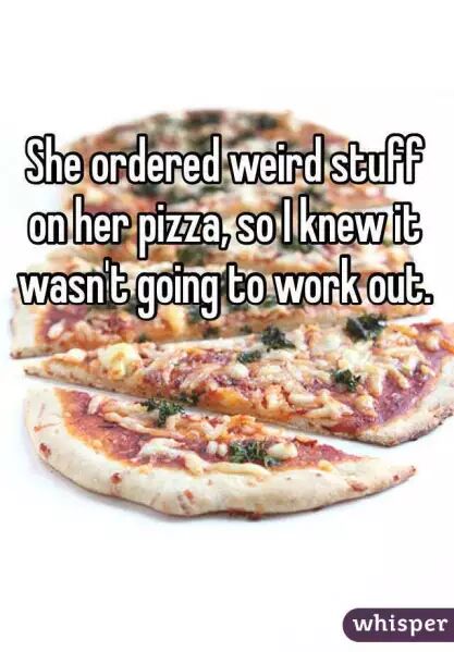 5. She ordered weird stuff on her pizza, so I knew it wasn't going to work out.